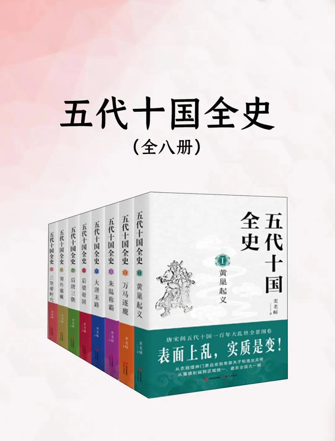“五代十国全史”全套八部,唐末五代通俗说史类作品,以史料为本,用缜密的逻辑分析和生动幽默的笔触,道尽这一纷争不断、波谲云诡的重要历史时期。重点叙述从唐末黄巢起义,到宋灭北汉的一百多年间(875—979年)发生的各种重大历史事件,包括黄巢起义、梁晋争雄、五代更替、十国兴起、赵宋统一等,详细解析其始末缘由,全景描绘唐宋间五代十国大乱世。