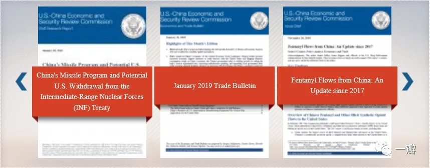 这是一个对华极端鹰派的组织,每年都会出年度报告,报告越来越厚,内容越来越扎眼,从其首页的几分报告的标题就可以看出。第1份是关于中国的导弹项目的,第3份讲的是芬太尼。