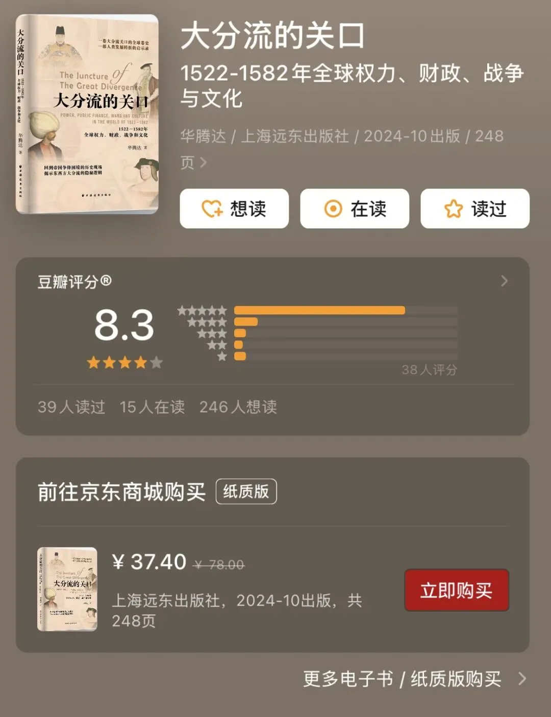 这不仅仅是一部全球史,更是一份关于“国家选择”的残酷对照实验。透过六大文明的同期较量,你会看到:决定文明走向的,不是地理或资源,而是在关键历史窗口期,一个社会能否挣脱旧制度的引力。