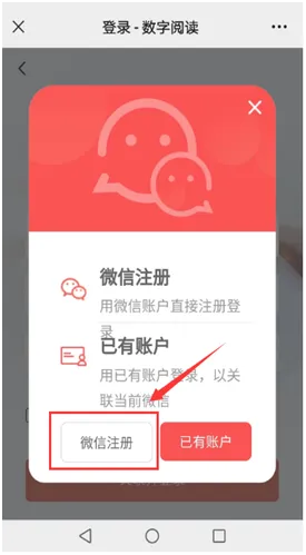 1、进入登录页面,→选择“微信注册”。