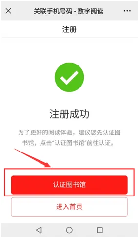 2、输入手机号码并获取验证码后,点击“关联手机号”,→点击“认证图书馆”→点击“图书馆微信认证”。