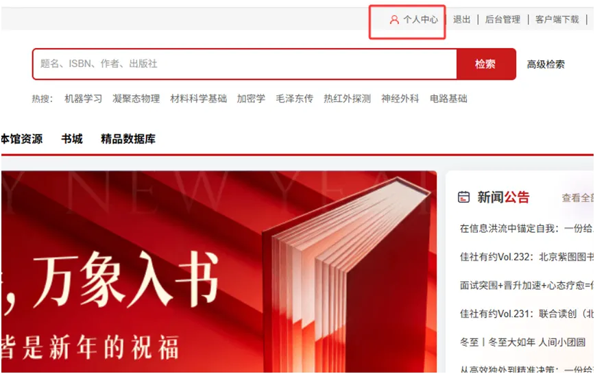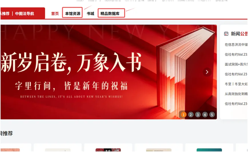 在首页导航栏直接点击“本馆资源”、“精品数据库”即可全文阅读馆配电子图书。