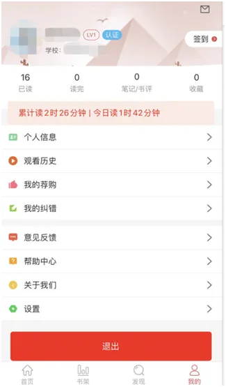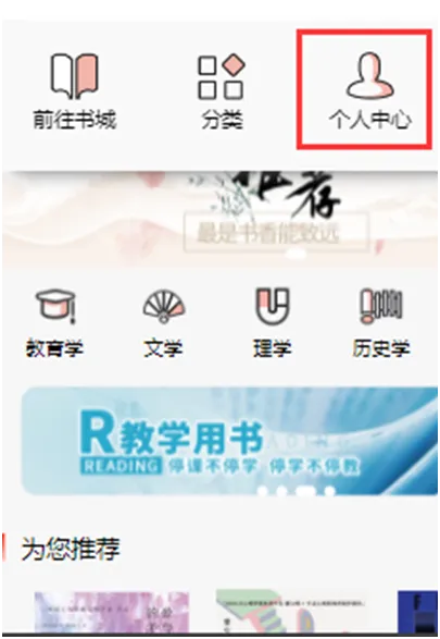 个人中心保存用户操作使用的数据记录,包括阅读、荐购、收藏、评论纠错等记录,进入用户设置或者个人信息可以修改个人信息、绑定图书馆、关联账号等操作。