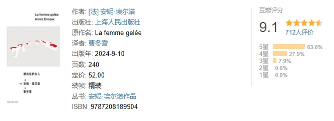 《被冻住的女人》是安妮·埃尔诺的第三部作品,也是作者本人称之为“”小说“”的最后一部作品。此后,她经历了与丈夫的离婚、父亲的死亡,创造出标志性的简洁形式。