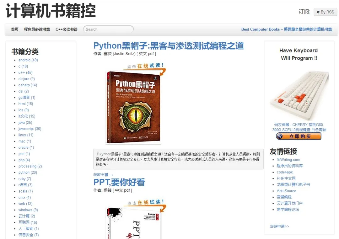 这个网站可谓是计算机专业的福音,这里包含许多优秀的计算机书籍下载。无论是英文原版还是中文这里都有。