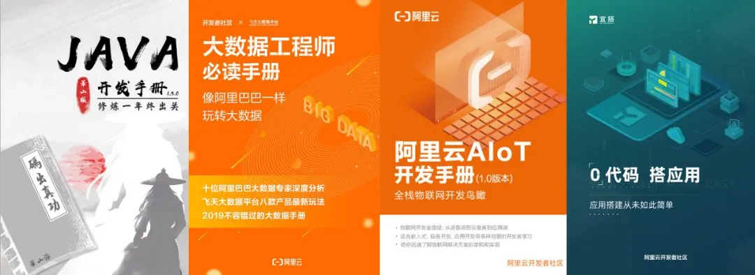 阿里妹是不会让你带着遗憾跨年的!我们甄选了 2019 全年阿里云开发者社区最受欢迎的 30+本电子书 , 从全民网红级的华山版《Java开发手册》 ;到涵盖飞天大数据平台核心产品玩法的《大数据工程师必读手册》 ;从红遍全国的《长安十二时辰》背后的技术深度解析,到聚集技术大咖专家的《阿里巴巴云原生实践15讲》……4 大领域、30+ 本电子书,文末免费领取,2019 不留遗憾!开发手册类