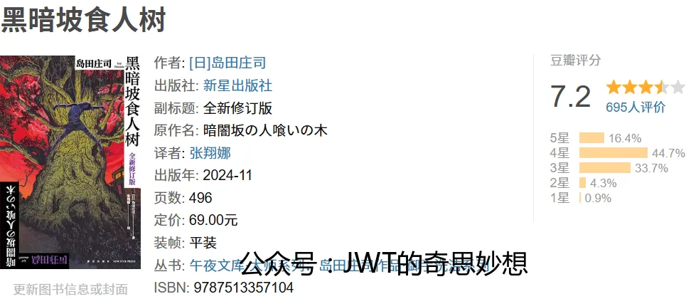 《黑暗坡食人树》是日本推理作家岛田庄司的“御手洗洁系列”代表作之一的全新修订版。故事围绕一株传说中以人为食的诡异巨树展开,将现实案件与超自然传说交织,构筑了宏大而奇诡的谜团。