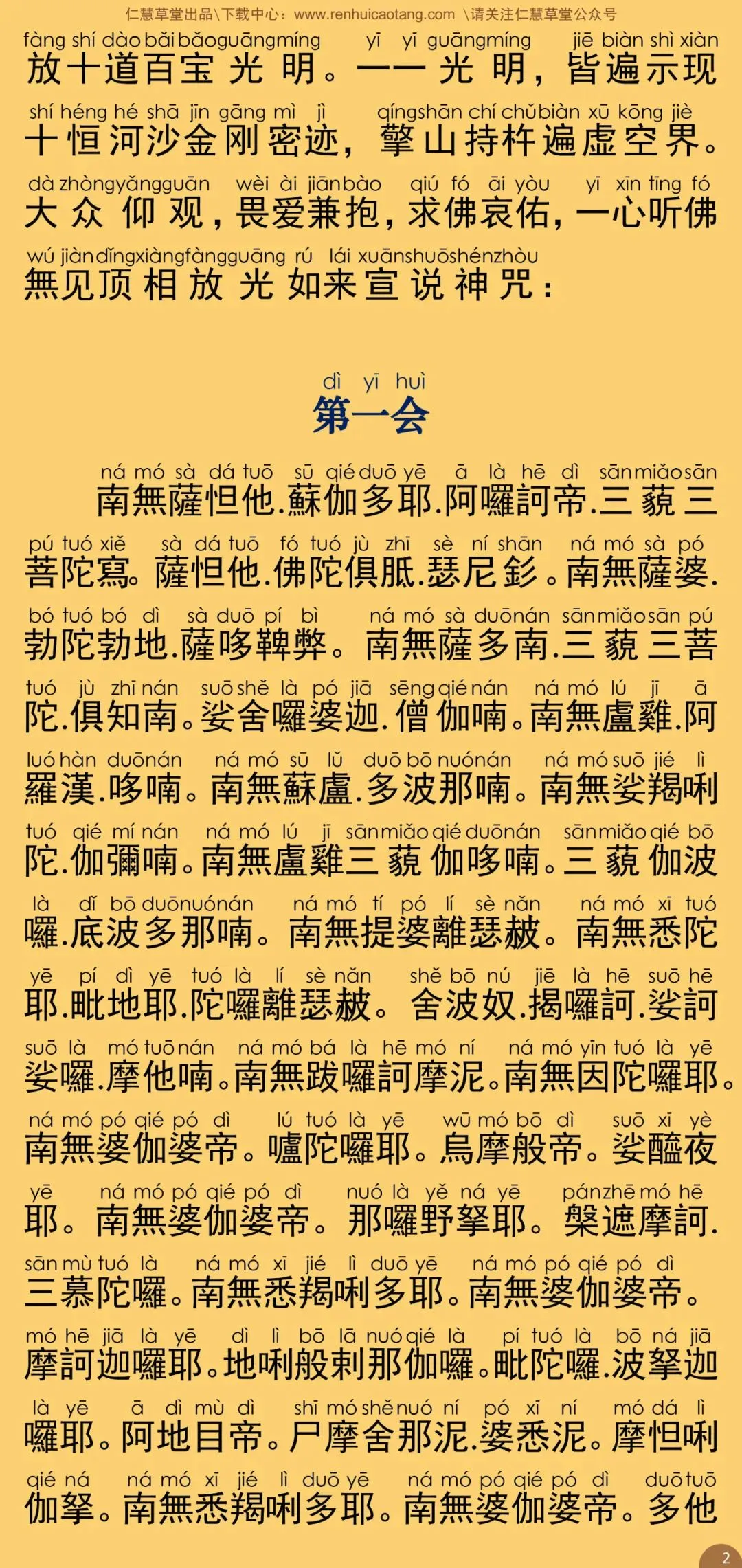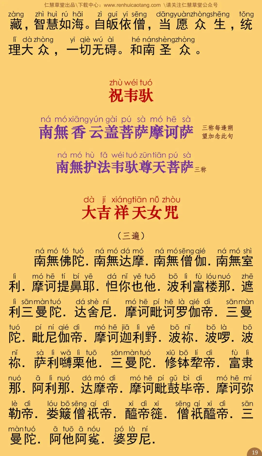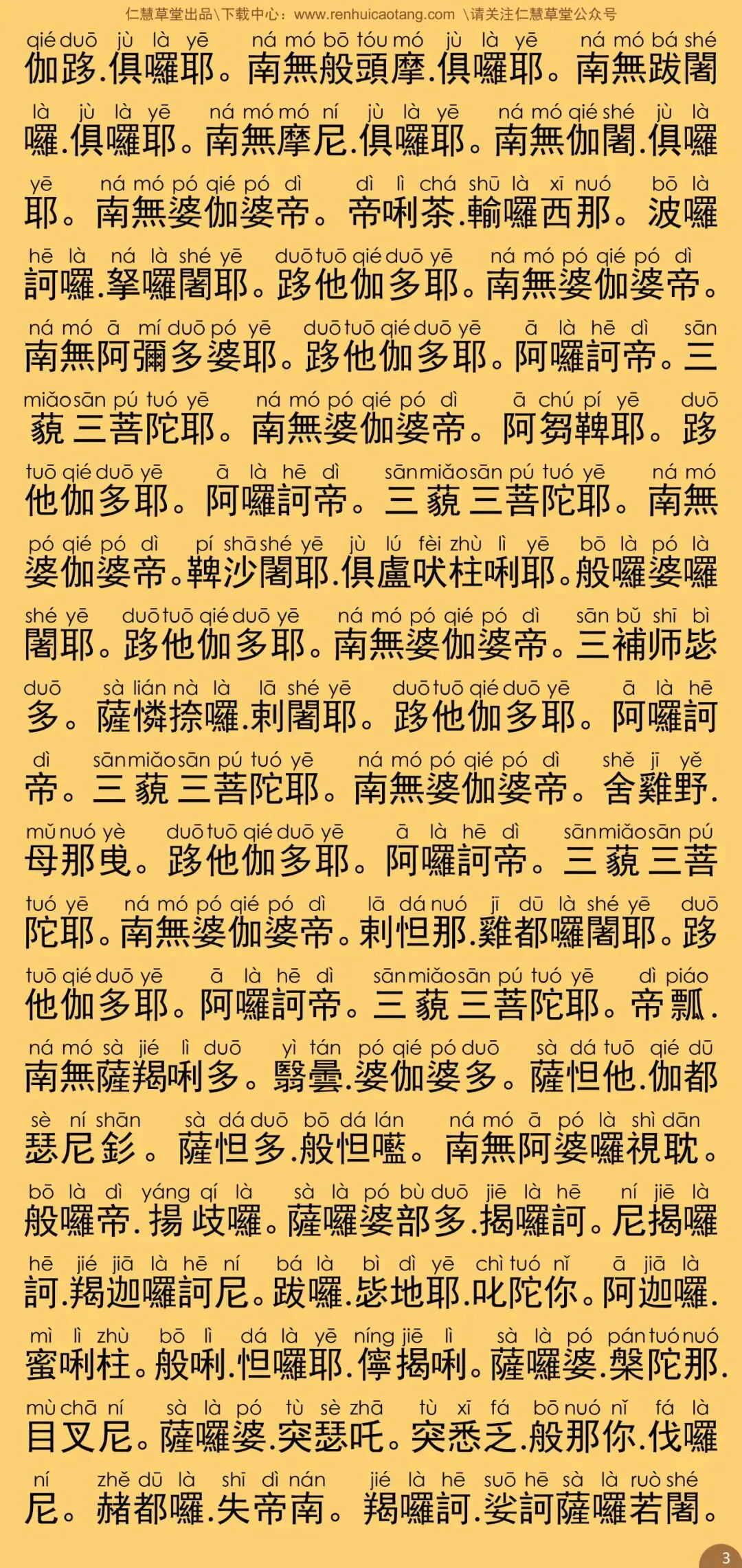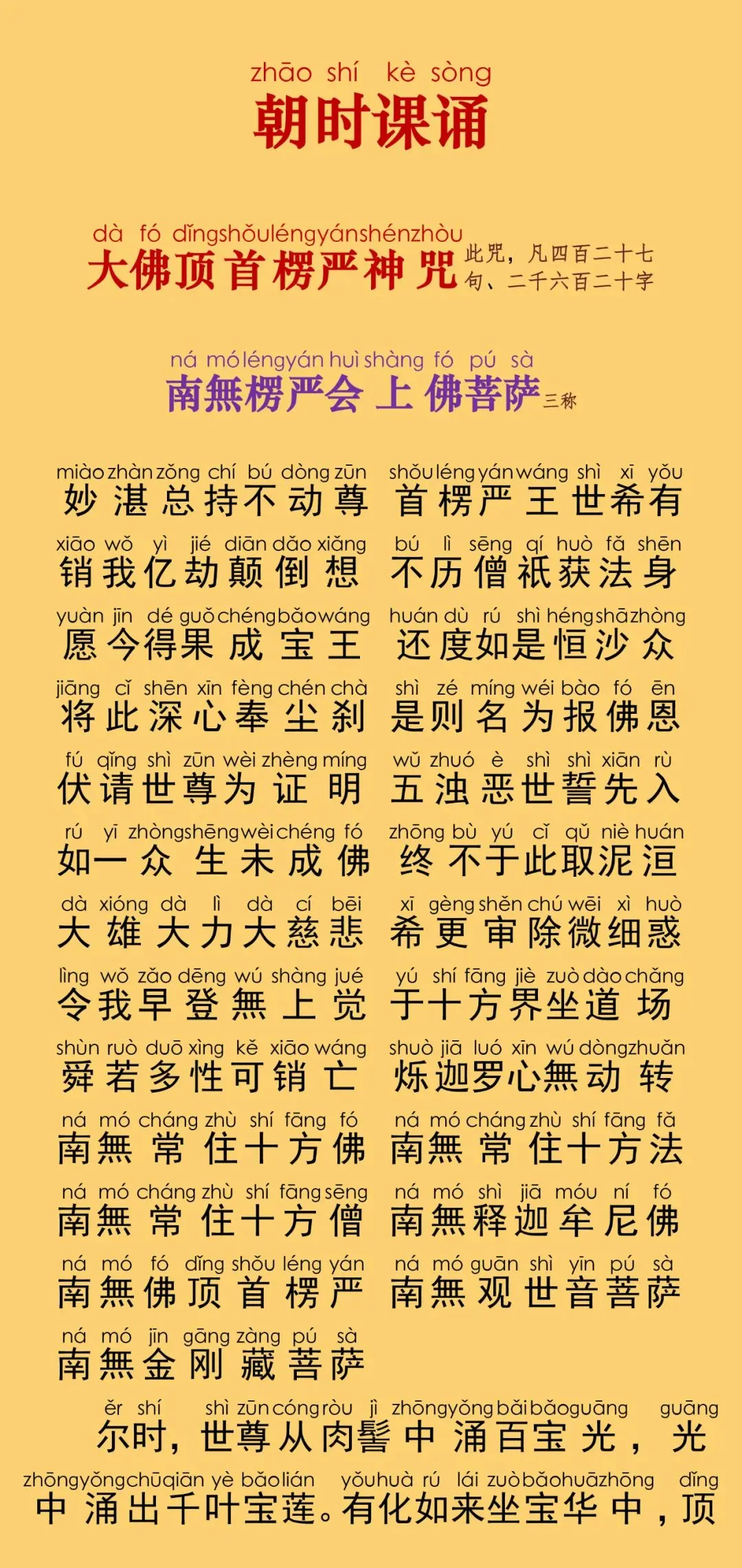 根据上海佛学书局二ΟΟ五年一月印行的《佛教念诵集》(朝时课诵)原藏影印本校正注音。句读及注音仅供参考。特此说明。