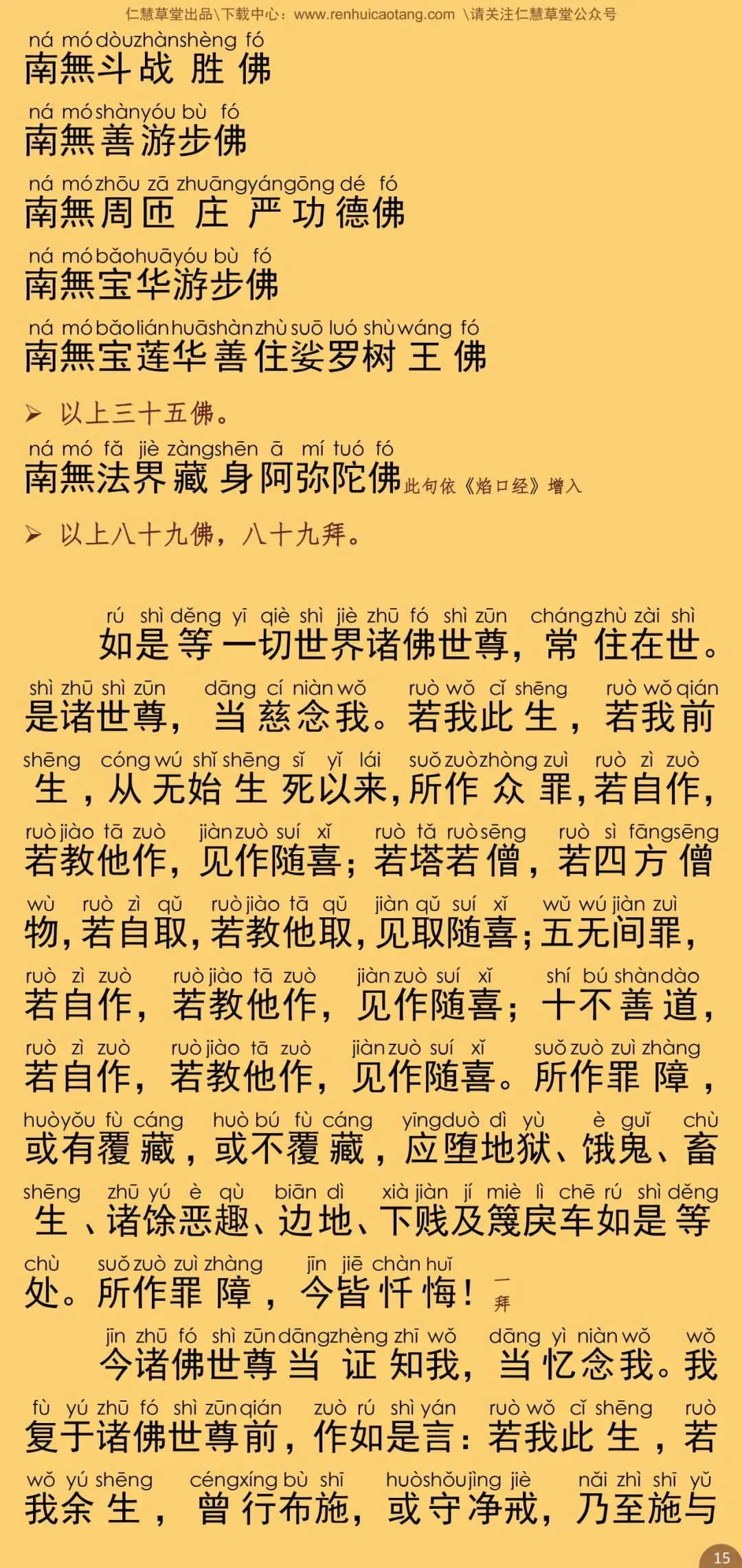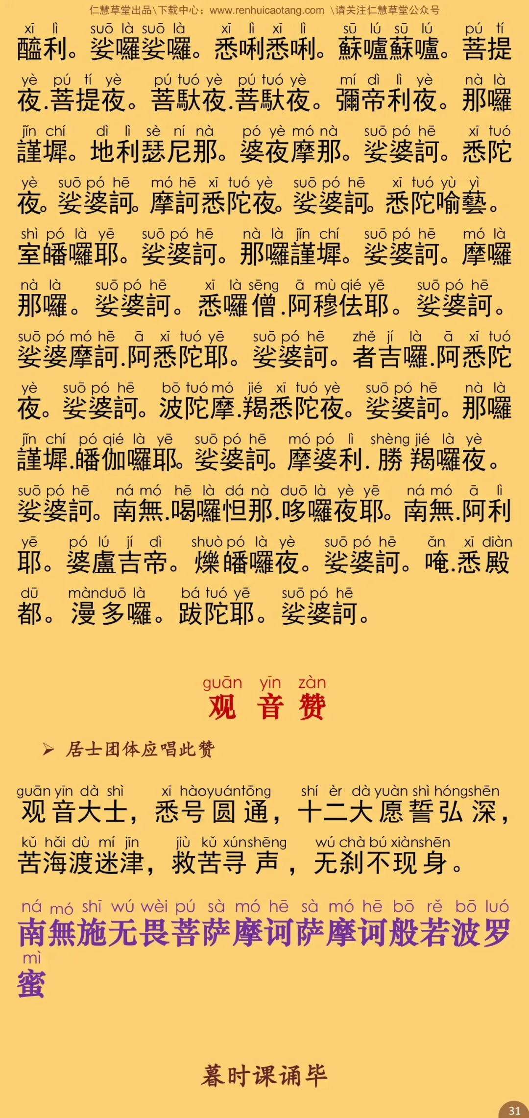 根据上海佛学书局二ΟΟ五年一月印行的《佛教念诵集》(暮时课诵)影印本校正注音。句读及注音仅供参考。特此说明。