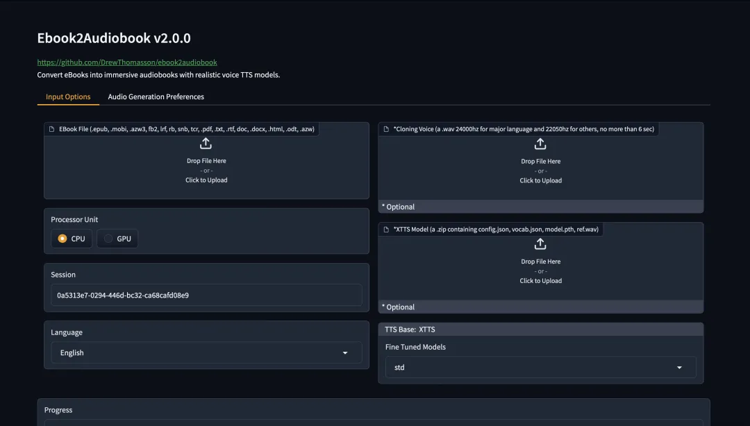 项目地址:https://github.com/DrewThomasson/ebook2audiobook