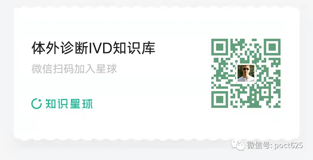 要了解更多体外诊断研发技术、付费内容、配方、注册资料、行业报告、性能评估模板等,欢迎扫下面二维码加入“体外诊断IVD知识库-知识星球”进行免费咨询、不限次数提问和星友们一起成长吧!