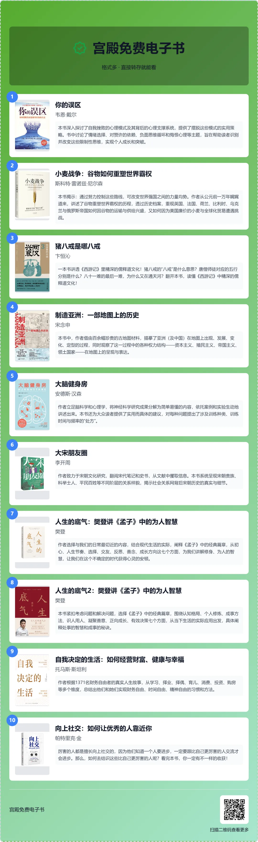 【免费电子书】你的误区,小麦战争,猪八戒是哪八戒,制造亚洲,大脑健身房,大宋朋友圈,人生的底气,自我决定的生活,向上社交