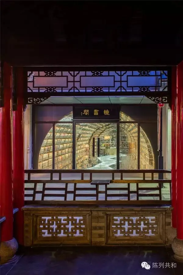这些像房子一样的书架是融入了扬州的街景文化,