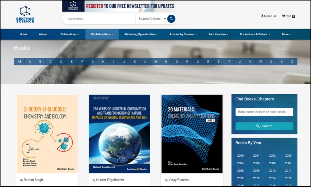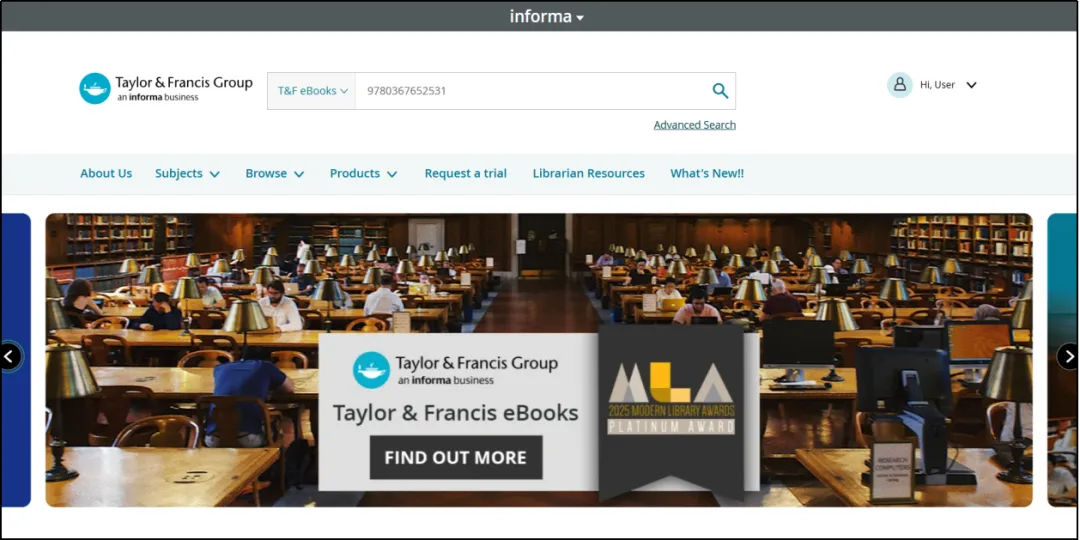 图书馆订购了该数据库的15个学科包里的部分专著,分别是:生物(Biology 2002-2025)、化学(Chemistry 2020-2025)、地球科学与地理学(Earth Sciences and Geography 2020-2025)、数学(Mathematics 2007-2025)、物理学(Physics 2007-2025)、经济与金融学(Economics and Finance 2003-2025)、语言学(Linguistics 2001-2025)、哲学(Philosophy 1963-2025)、政治(Political Science 1984-2025)、心理学(Psychology 1985-2025)、社会工作(Social Work 1997-2025)、社会学(Sociology 1997-2025)、法律(Law 2015-2025)、文学(Literature 2017-2025)和历史(History 2017-2025)。
