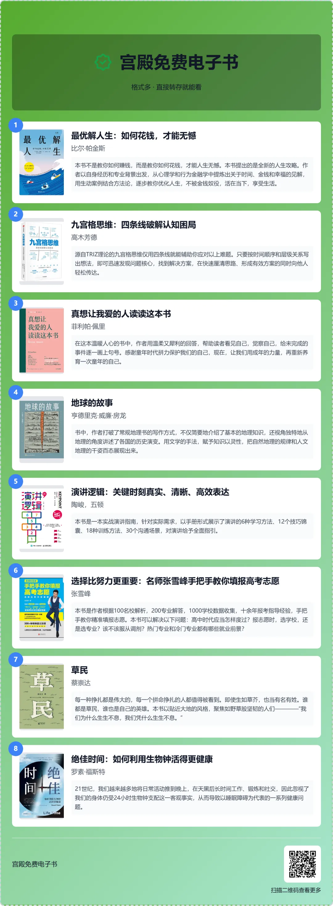 【免费电子书】最优解人生,九宫格思维,真想让我爱的人读读这本书,地球的故事,演讲逻辑,草民,绝佳时间,选择比努力更重要