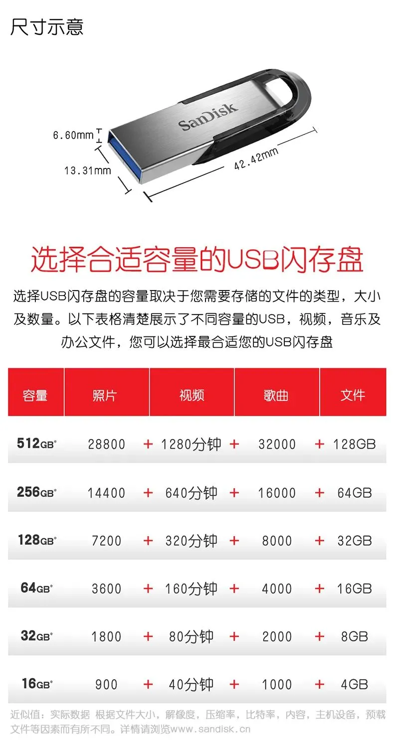 首先介绍一下这个U盘:SanDisk闪迪大品牌,官方正品,128GB大容量, USB3.0 高速达150MB/秒的传输速率,无论是存电影还是音乐都是杠杠的!存放日常文档更加不在话下。