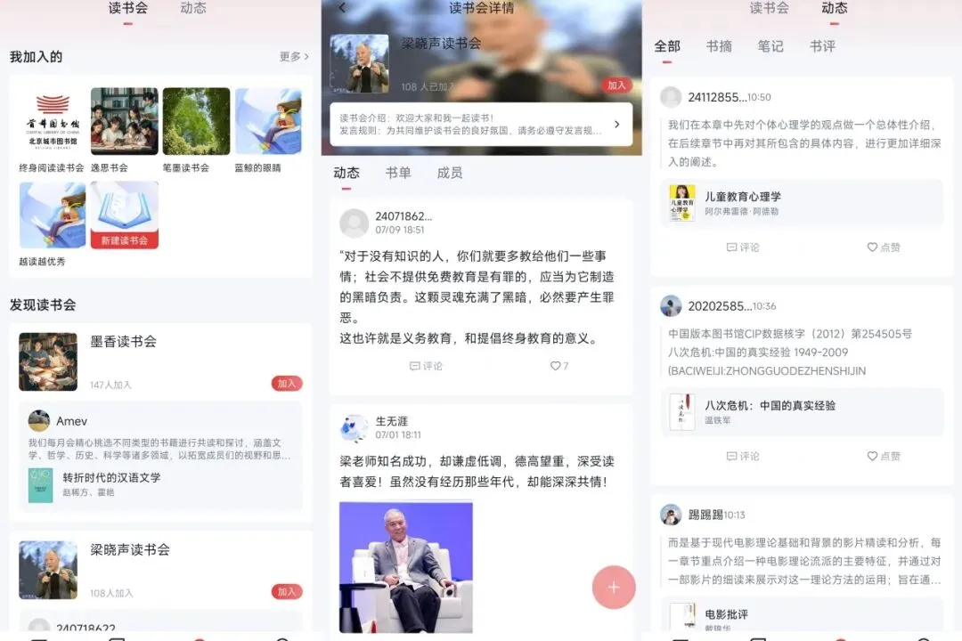 此外,读者还能创建读书会,作为专属的线上阅读交流平台,由创建者管理运营,成员间共享资源,共同构建线上精神栖息地,与书友并肩探索阅读世界。