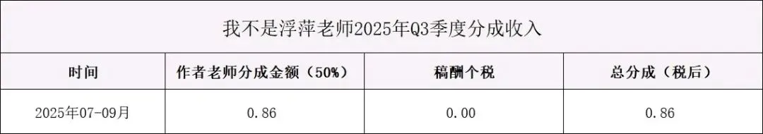 上次的稿费也是所有平台的稿费总和,这种小短篇是真的不赚钱,除非能有几十万、上百万的阅读量,不然分到我的钱都提现不了,因为几毛几块的只能累计到账户里,不能打款。