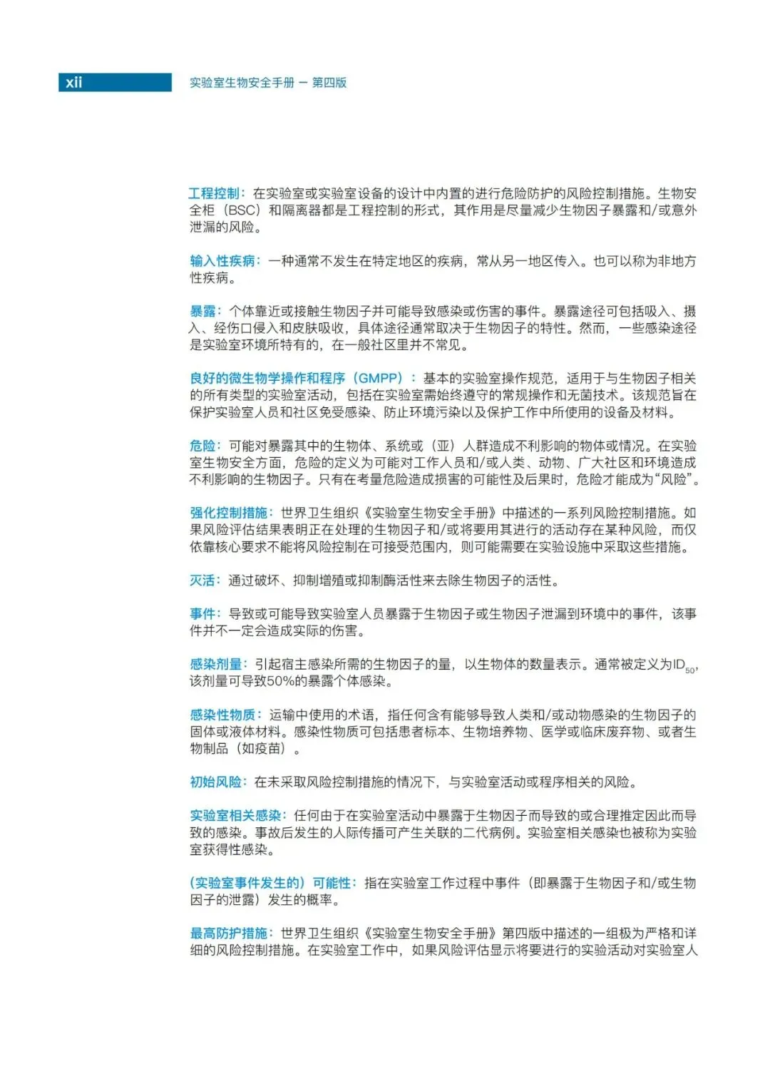 本书相比第三版内容更加全面,还新增了七本专著,从多个角度深入探讨了实验室生物安全的各个领域。尽管世卫四版的核心文件仅有约100页,与第三版的170余页相比似乎简短了不少,但值得一提的是,它并非孤立的100页,而是与七本专著共同构成了近600页的宏大内容,堪称实验室安全领域的鸿篇巨制。这本手册的厚重与深度,不仅体现在其页数上,更在于它为全球实验室生物安全工作提供的全面而系统的指导。