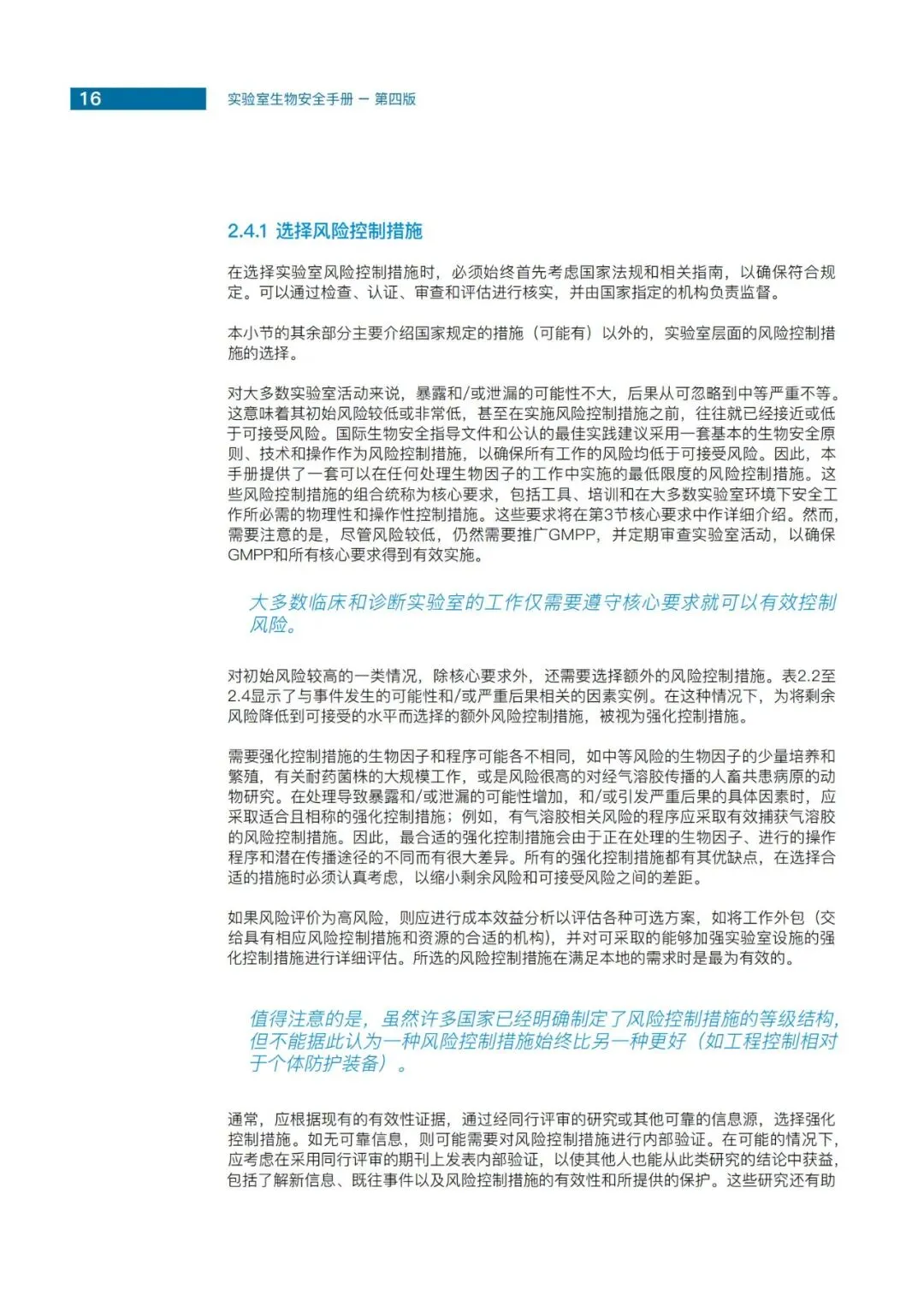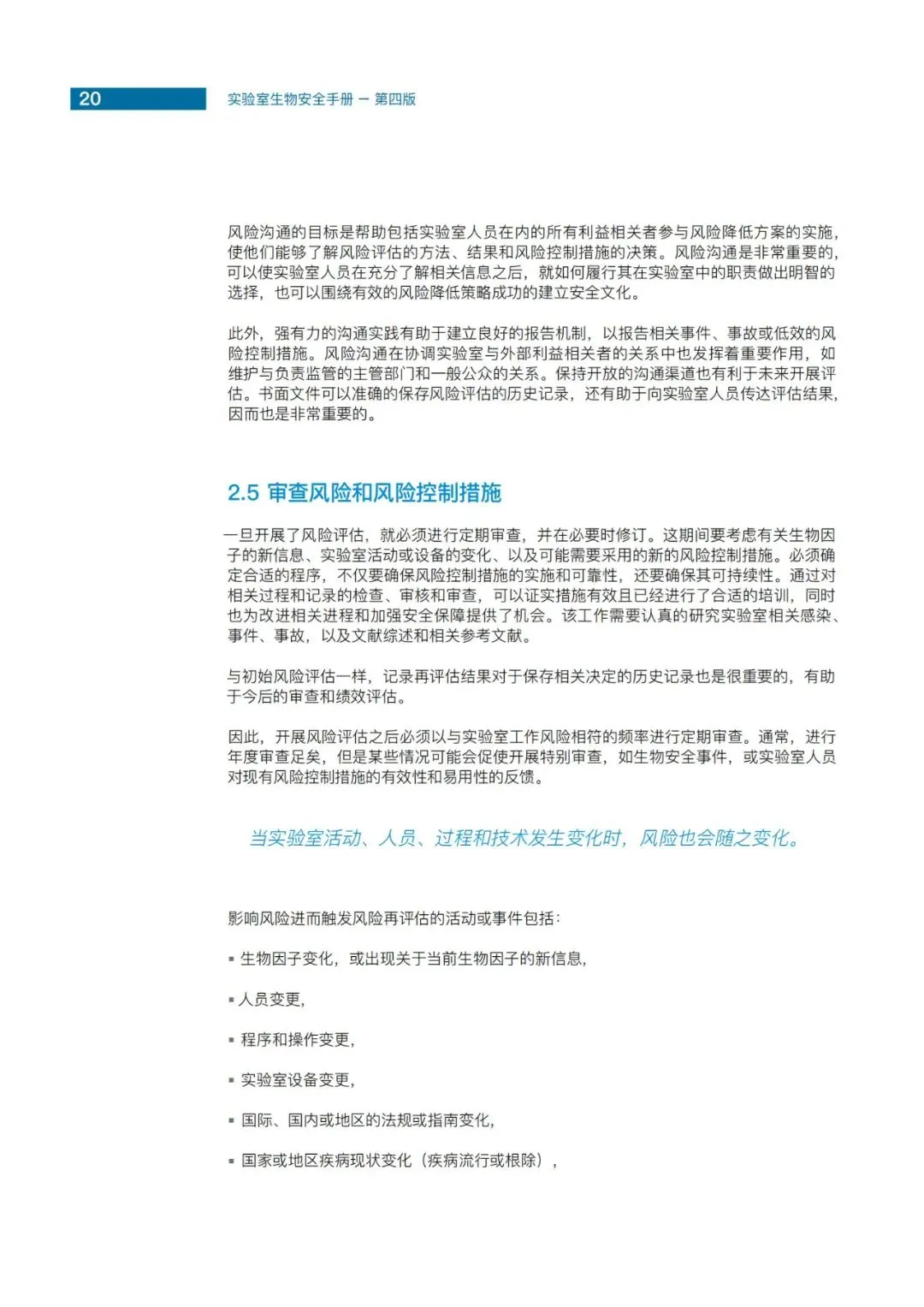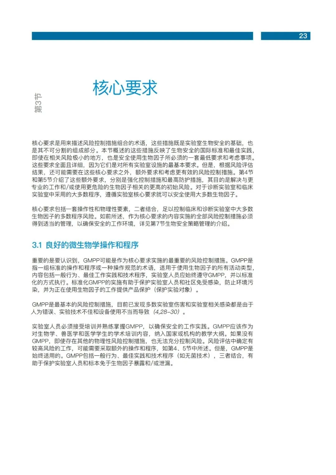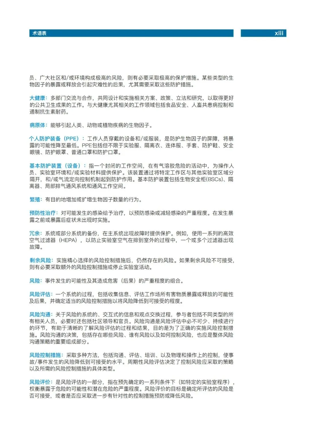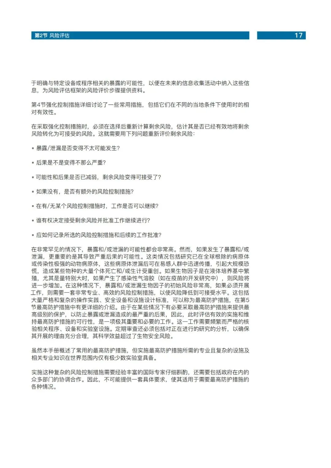 第四版中我们摒弃了沿用40余年的微生物风险组和实验室等级概念,转而以风险评估为核心,重新定义了实验室的分类,包括核心要求、加强的控制措施以及最高的防护措施。风险评估成为世卫四版的核心理念。在实验室生物安全方面,风险评估不仅作为核心文件的关键章节,更在七本专著中以最长篇幅单独成册。