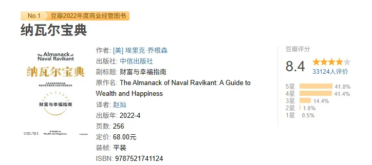 《纳瓦尔宝典》是硅谷投资人纳瓦尔·拉维坎特的智慧合集,由埃里克·乔根森从他多年的推特、播客、访谈中整理而成。纳瓦尔是AngelList的创始人,早期投资过Twitter、Uber等公司,但让他出圈的是那些关于财富和幸福的思考。