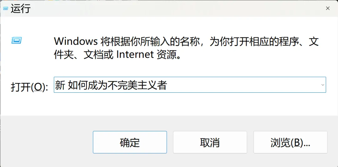 示例:找畅销书《如何成为不完美主义者》,即在跳出的“运行”页面的“打开”输入框,输入:“新+空格+如何成为不完美主义者”,按“确定”。