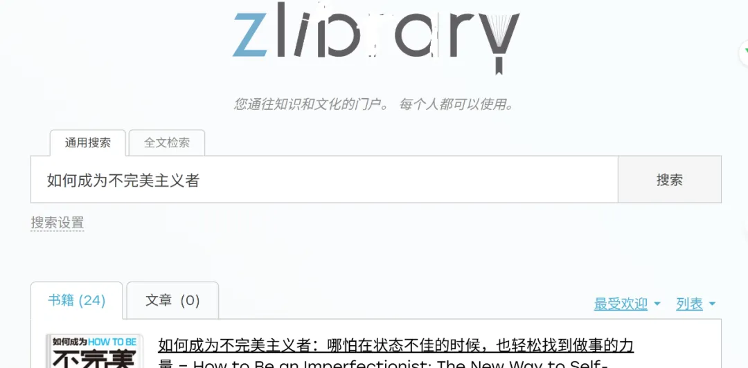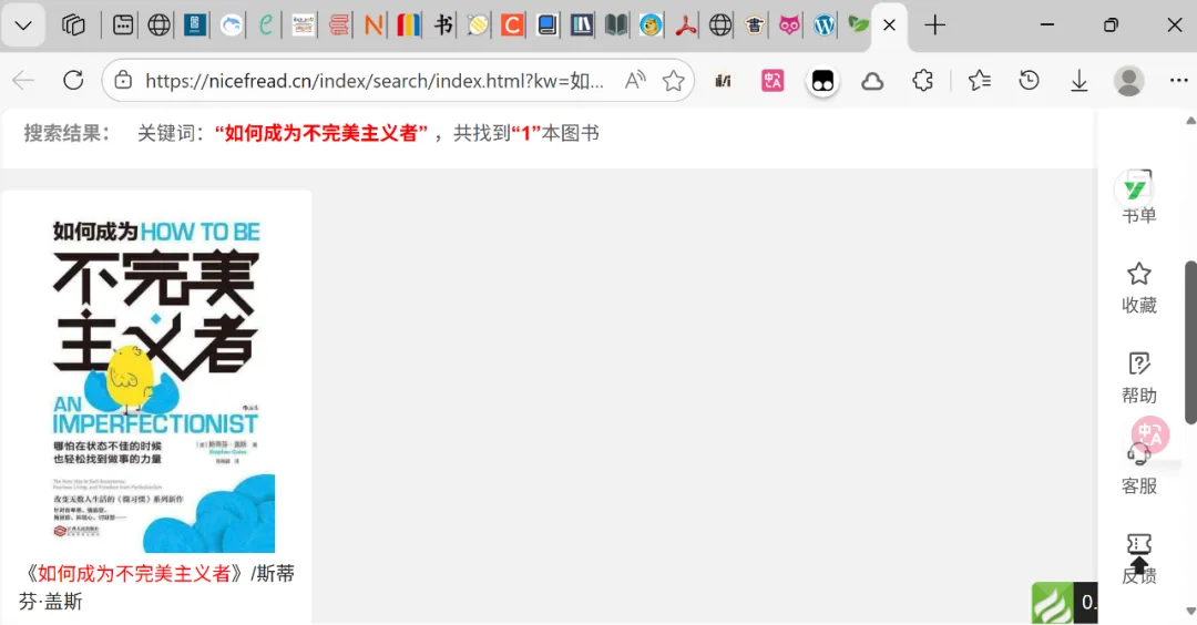 逐个点开地址栏中的电子书网站,寻找有效的搜索结果,完成《如何成为不完美主义者》的浏览、下载任务。