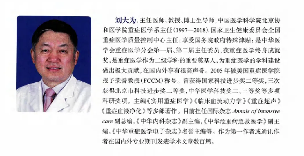 作者:刘大为,教授,主任医师,博士生导师。享受国务院政府特殊津贴。北京协和医院重症医学系主任,是中华医学会重症医学分会第一届、第二届主任委员,重症医学终身成就奖。