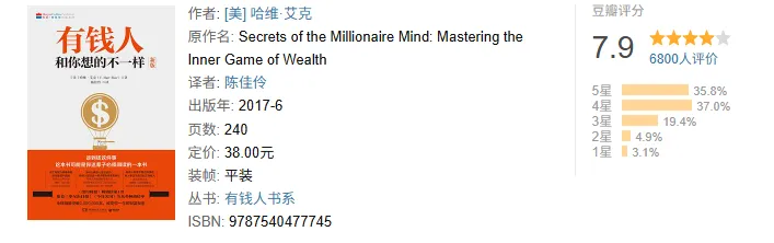 这本书的风格比较鸡血,艾克本人是做培训的,书里有不少推销课程的痕迹。但抛开这些,核心观点还是有参考价值的——想改变财务状况,先检查一下自己的金钱信念。