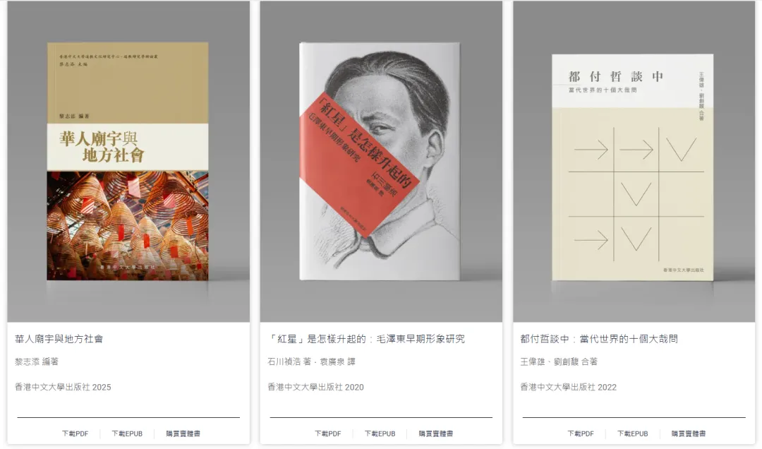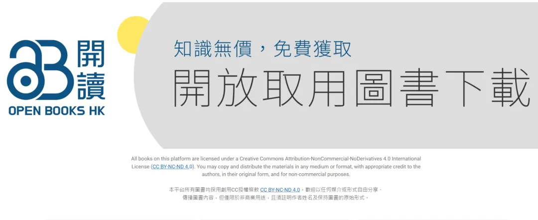 这是一个由三所香港高校(香港中文大学、香港城市大学、香港大学) 联合发起的免费取用图书计划,允许公众免费下载和分享(非商业用途)。
