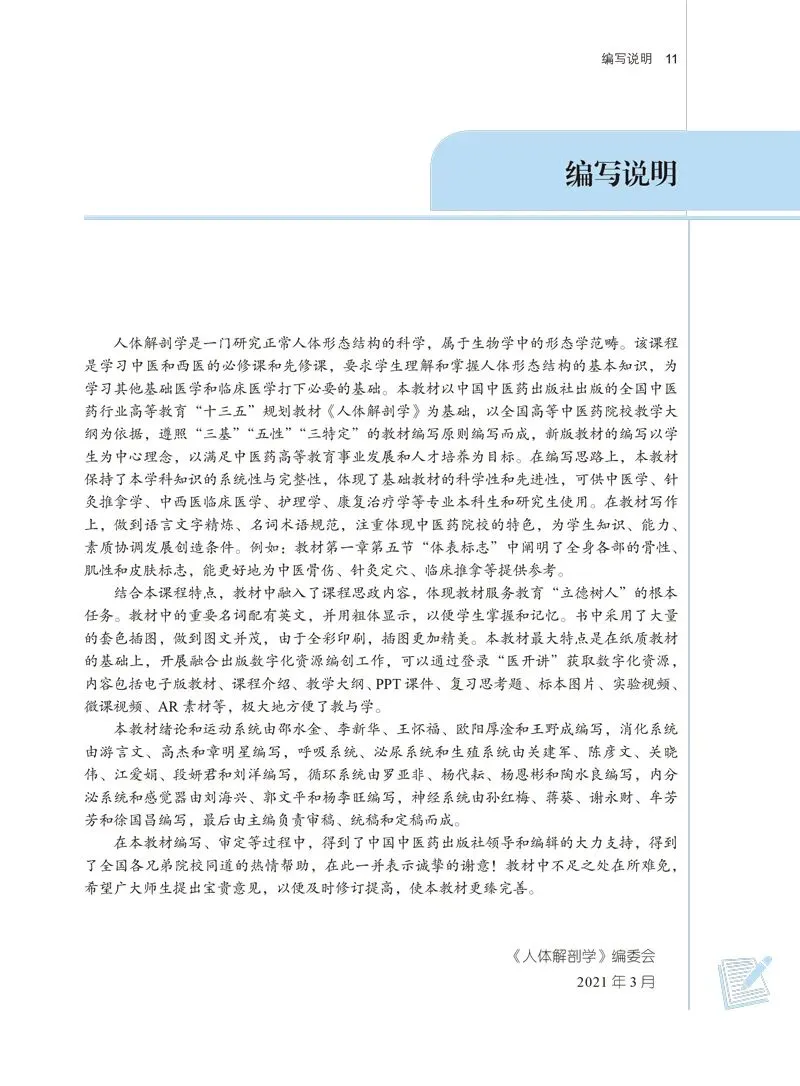 人体解剖学属形态学范畴,是中医学专业的基础课。本书介绍了人体各系统和器官的形态和结构特征,各器官、结构间的毗邻和联属关系,可为学习后续的医学基础课程和临床医学课程奠定基础。