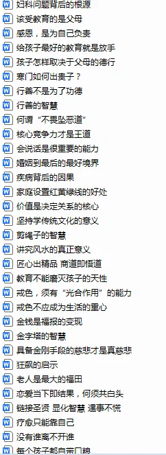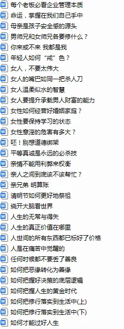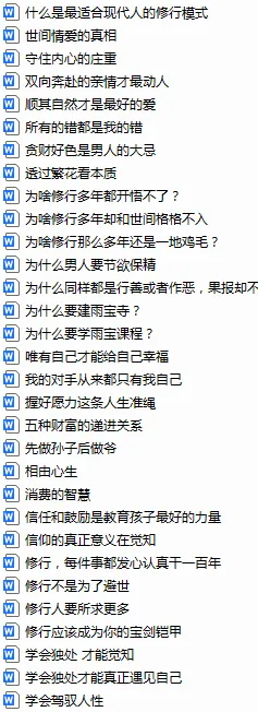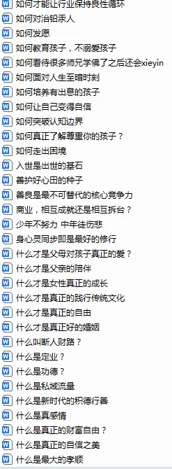 有教育方面,修行方面,商业方面等内容。