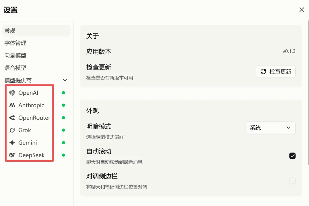设置界面大家可以看下图,这里可以配置自己的大模型。