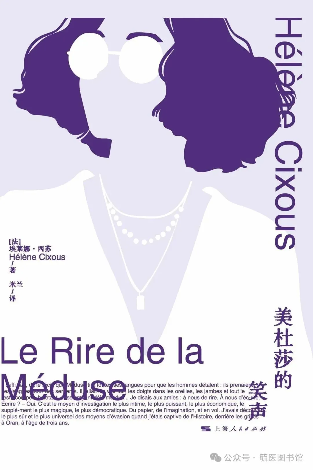《美杜莎的笑声》是法国女性主义理论家埃莱娜?西苏的代表作品,一直以来被认为是现代女性主义文学理论的重要开端之一,它呼吁女性在文学和社会中发现自己的声音,在女性主义文学理论和写作实践中具有重要意义。“美杜莎的笑声”是一种象征,美杜莎是希腊神话中的女妖,她具有将男人石化的力量,同时也代表了女性的力量和创造力。作者借此传达——女性需要找到自己的语言和文学,以表达自己独特的经验和观点,并摆脱单一性别主导的文学和语言的束缚。这种写作风格强调直觉、感性和非线性的思考方式,这是不同于男性写作的写作。作者认为,女性的写作能力可以帮助她们重新获得力量和自我认同,同时也能为整个社会带来积极的变化。