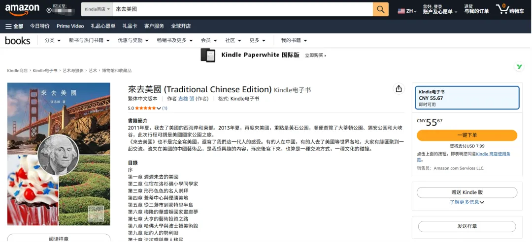 《来去美国》(繁体字版)在亚马逊主站(Amazon.com)上架啦,以下是繁体版《来去美国》电子书购买路径(复制链接,然后前往Amazon.com粘贴即可打开):