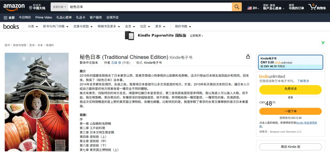 《秘色日本》(繁体字版)在亚马逊主站(Amazon.com)上架啦,以下是繁体版《秘色日本》电子书购买路径(复制链接,然后前往Amazon.com粘贴即可打开):