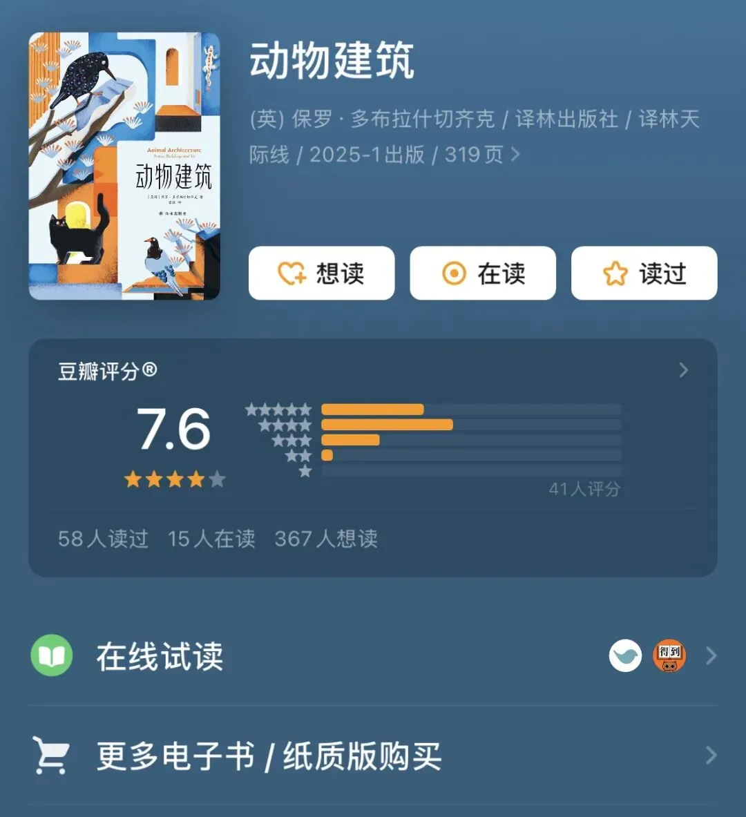 《动物建筑》是一本颠覆认知的跨界启示录。作者保罗·多布拉什切齐克带领我们进行一场逆向勘察:不是人类如何为动物设计栖息地,而是如何让蜂巢的六边形结构治愈我们的建材浪费,让蜘蛛网的预应力原理革新桥梁工程,让珊瑚礁的共生生态重构社区规划。