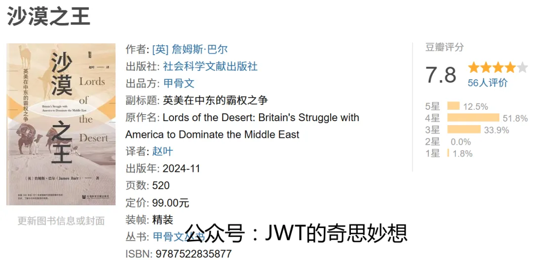 《沙漠之王》是英国历史学者詹姆斯·巴尔的著作,副标题“英美在中东的霸权之争”点明全书核心。本书聚焦1883年至1985年百年间,英国与美国在中东地区为争夺影响力而展开的复杂博弈。