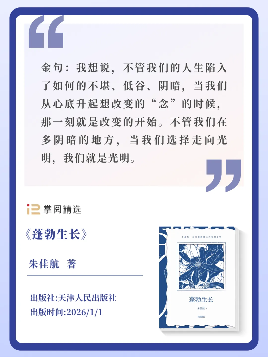 全网600万粉丝博主朱佳航回溯自己的前二十年人生,以真诚叙事为我们带来一本有趣的自传,让我们明白生命要历经一万次破土,方能迎来春和景明。