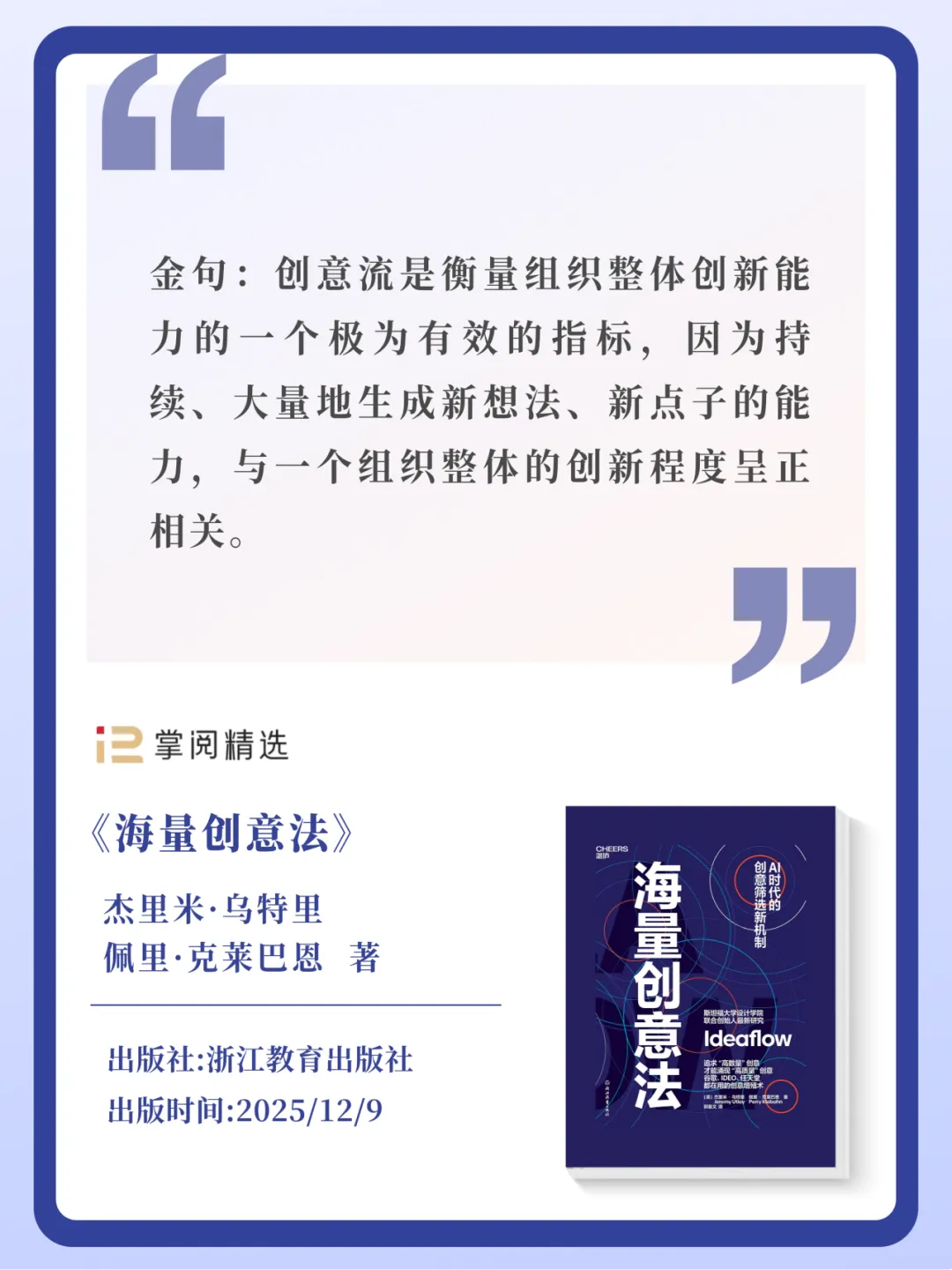 你知道吗?创意是可以训练出来的。这并不是天方夜谭,斯坦福大学设计学院的两位教授提出“创意流=创意数量/时间”这一核心公式,让你的偶然灵感变为稳定生产力。