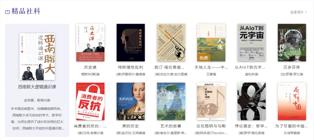 “书香中国”数据库基于互联网技术,通过云端服务为本院读者提供优质的数字阅读服务。目前本馆书香中国数据库提供50万余册正版数字图书,10万余集有声听书,千余种电子期刊。覆盖中图法22大类,涵盖哲学、经济学、法学、教育学、工学、文学、历史学等十三大学科门类。图书按内容或主题划分为畅销经典、名家名作、大奖书系、党政读物、人文历史、教育科普、经管理财等类型,能满足不同类型读者的阅读需求。