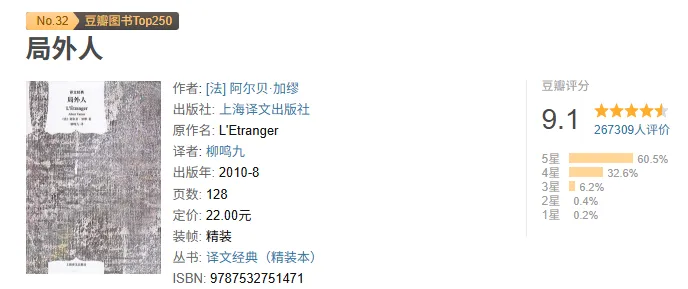 《局外人》是法国作家加缪的成名作,同时也是存在主义文学的杰出作品之一,该书以一种客观记录式的“零度风格”,粗线条地描述了主人公默尔索在荒谬的世界中经历的种种荒谬的事,以及自身的荒诞体验。从参加母亲的葬礼到偶然成了杀人犯,再到被判处死刑,默尔索似乎对一切都无动于衷,他像一个象征性的符号,代表了一种普遍的存在,又像是一个血红色的灯塔,具有高度的警示性。然而,局外人现象的产生无疑是由这个世界本身所孕育的,默尔索的存在有其深刻的外部原因。📚 资源获取