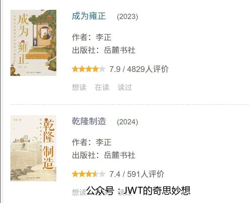 《成为雍正》与《乾隆制造》是历史学者李正围绕清朝帝王撰写的姊妹篇著作。