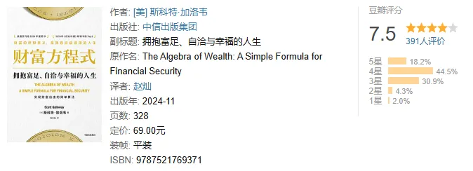 人人都想拥有财富,更渴望早日实现财富自由。作者用犀利、幽默的语言阐明,理财不只等于投资,而是一场关乎品格塑造、职业选择与时间复利的全面修行。他在书中给出了一条简单直观的财富方程式: