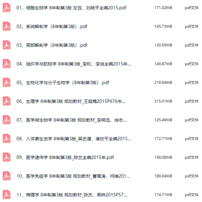 注:篇幅有限,以上仅部分展示,有需要的小伙伴想要获取【八年制第三版37本】更多详细内容,欢迎扫描下方二维码添加小助理微信领取。