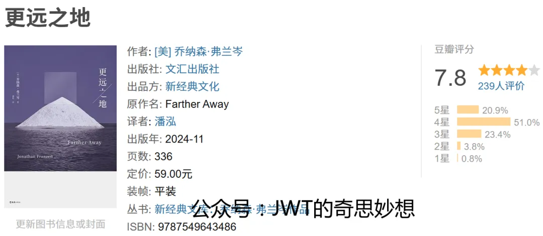 《更远之地》是美国当代作家乔纳森·弗兰岑的散文与随笔合集,原作名 Farther Away。本书收录了作者在小说创作之外,关于文学、自然、社会与个人体验的沉思与评论。