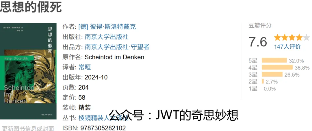 《思想的假死》是德国哲学家彼得·斯洛特戴克的著作,由常晅翻译、南京大学出版社出版,属“棱镜精装人文译丛”。本书以“假死”为隐喻,探讨思想在遭遇系统性危机、技术冲击或意义空窗时,如何进入一种悬置的休眠状态,以及这种状态对现代生存的深层影响。