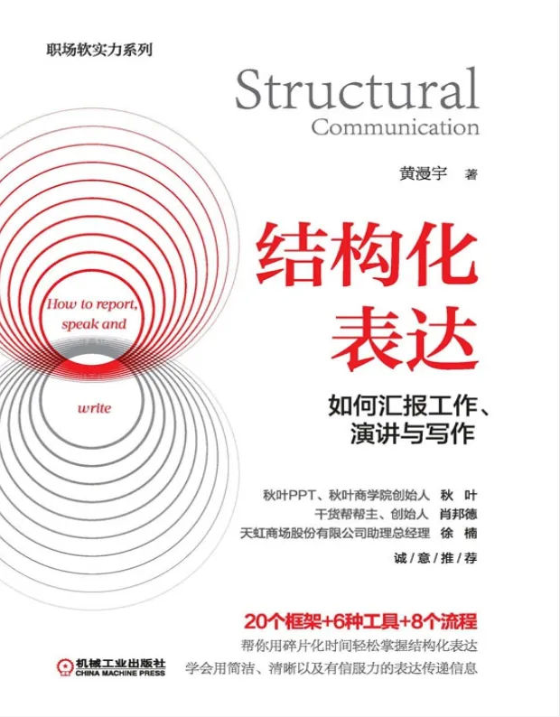 这本书的独特价值在于它将抽象的“表达艺术”转化为可操作的“表达技术”。作者强调结构化表达不是套用模板,而是培养一种“以受众为中心、以目标为导向”的思维习惯。无论是需要向上汇报的基层员工、需要跨部门协调的中层管理者,还是需要对外演讲的企业高管,都能通过掌握书中“一个中心、三个基本点、五大应用场景”的方法体系,显著提升信息传递效率和决策影响力,在职场沟通中实现从“说得清楚”到“说得漂亮”的质变。