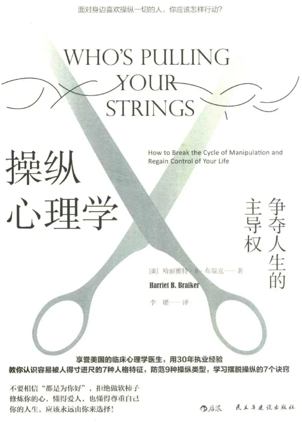 📚《操纵心理学:争夺人生的主导权》是美国知名临床心理学家哈丽雅特·B·布瑞克(Harriet B. Braiker)的经典著作。本书旨在为读者提供一套识别、抵抗并摆脱不良人际操纵的系统方案,帮助人们从被动的“软柿子”状态中夺回人生的主导权。