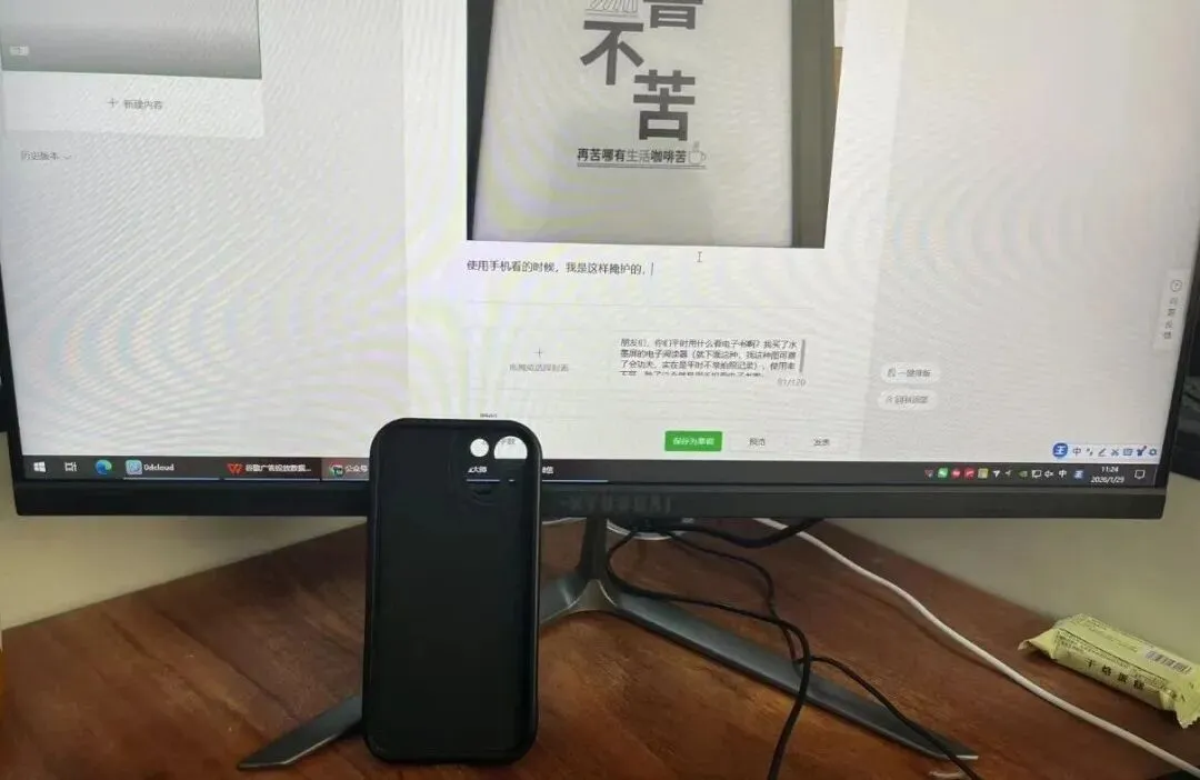 使用手机看的时候,我是这样掩护的,这样就是衍生出一个问题,由于我是个很懒的人,这样看,我就要频繁的去翻页,自动翻页有些麻烦不能自动匹配我的习惯,忽然想起朋友之前远距离拍照有个蓝牙控制手机的小东西,我就想或许也可以这样用,我随机就pdd找,买,下单,收货....于今天上班实际体验效果咋样,连接上蓝牙还挺快,打开书阅读,翻页很方便,满足了我的需求,不错不错。